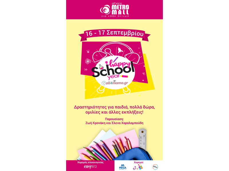 Το μεγαλύτερο Back to School Event, το Happy School Year by all4mama.gr πραγματοποιήθηκε για πρώτη χρονιά με πολύ μεγάλη επιτυχία στο Athens Metro Mall τον Σεπτέμβριο του 2017! Με ανάλογη επιτυχία, η διοργάνωση συνεχίστηκε ως το 2022.